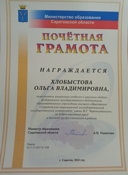 Сотрудник ИДПО отмечена ведомственной грамотой