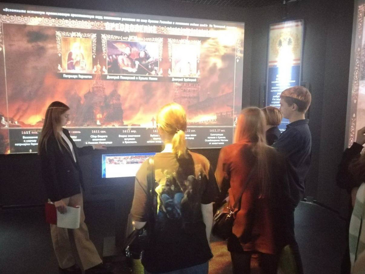 8 ноября 2024 г. в 351 группе историков-педагогов состоялся необычный урок – урок в музее Исторический парк «Россия мои история». Это была ролевая игра, где студенты выполняли роли учеников и учителей, а преподаватель кафедры методики обучения истории и обществознания И. В. Ястер была наблюдателем и экспертом. Студентки Шахрей Татьяна и Солдатова Алина провели урок-экскурсию в 7 классе на тему: «Окончание смутного времени», посвященный прошедшему празднику Дню народного единства. Экспозиции музея являлись не иллюстрациями к уже приобретенным знаниям, а их важнейшим источником. Помимо экскурсии по экспозициям, посвященным эпохе Смутного времени, Татьяна и Алина провели небольшие игры для проверки домашнего задания и запоминания новых терминов, которые прозвучали на уроке. Ученикам очень понравились «Исторические пазлы» и «Угадай новый термин». Будущих педагогов-историков и экскурсантов Исторический парк поразил своей атмосферой, а интерактивные элементы сделали посещение особенно запоминающимися!