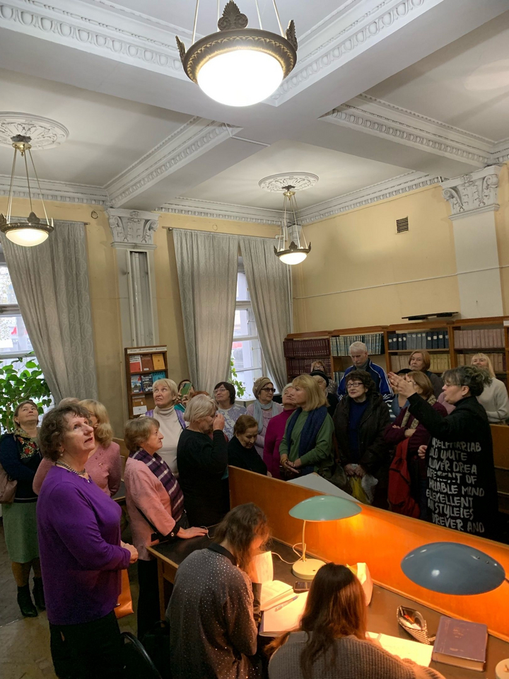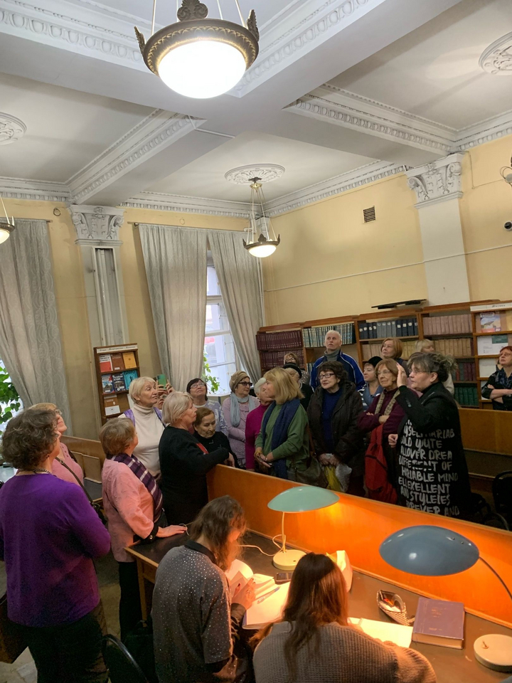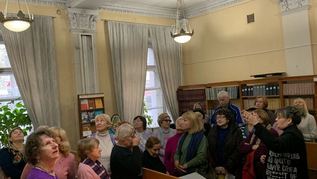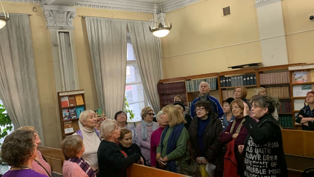 В течение экскурсии речь также шла о здании библиотеки, особенностях его архитектуры, организации библиотечного дела, работе библиотеки в годы Великой Отечественной войны и советское время, об особенностях формирования книжного фонда библиотеки.