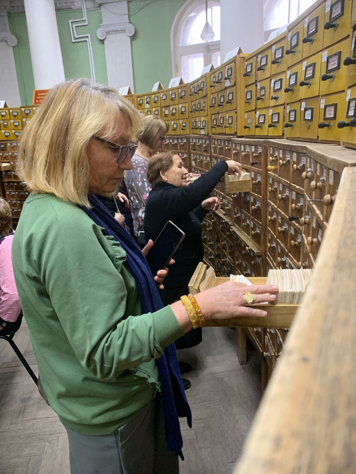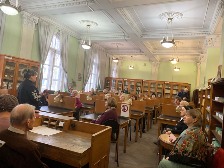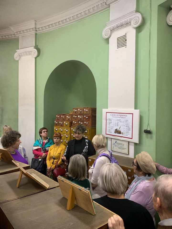 В зале абонементов гости услышали о дарителях: М. Н. Галкине-Враском, И. А. Шляпкине, А. П. Скафтымове, Д. А. Рамзаеве, Т. М. Акимовой, В. В. Вагнере. Далее экскурсия продолжилась в книгохранилище.