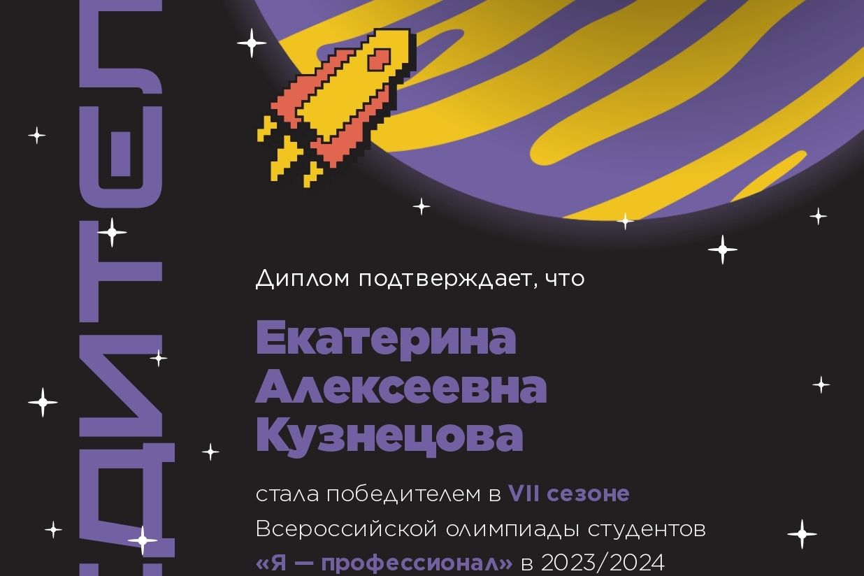Студентка направления «Филология» Екатерина Кузнецова стала победителем в VII сезоне Всероссийской олимпиады студентов «Я – профессионал» в категории «Бакалавриат» по направлению «Языкознание и литературоведение».