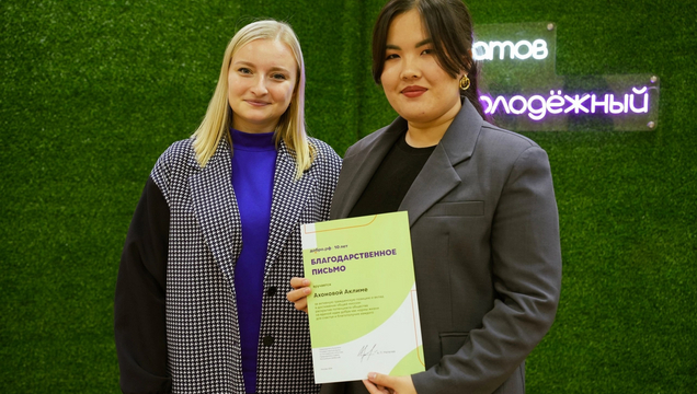 Студентка 4 курса факультета психологии, руководитель направления "Доброволец" студенческого совета Аклима Ахонова удостоена Благодарственного письма председателя Комитета Государственной Думы по молодёжной политике Артёма Павловича Метелева.