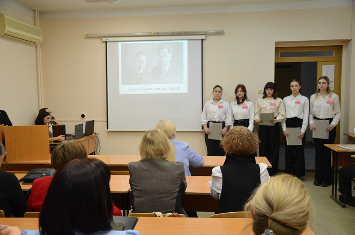 Кафедральный день с одной стороны представлял собой основанное на документальных свидетельствах выступление профессоров О.В. Мякшевой и С.В. Андреевой об известных в истории Саратовского университета именах из династии Ольги Борисовны. С другой – фрагменты из воспоминаний и личных дневников Оли Брин-Сиротининой, прочитанные студентами на фоне классической музыки, что повышало градус эмоциональности встречи, дополняло образ Ольги Борисовны яркими штрихами, возвращало в героическое прошлое России.