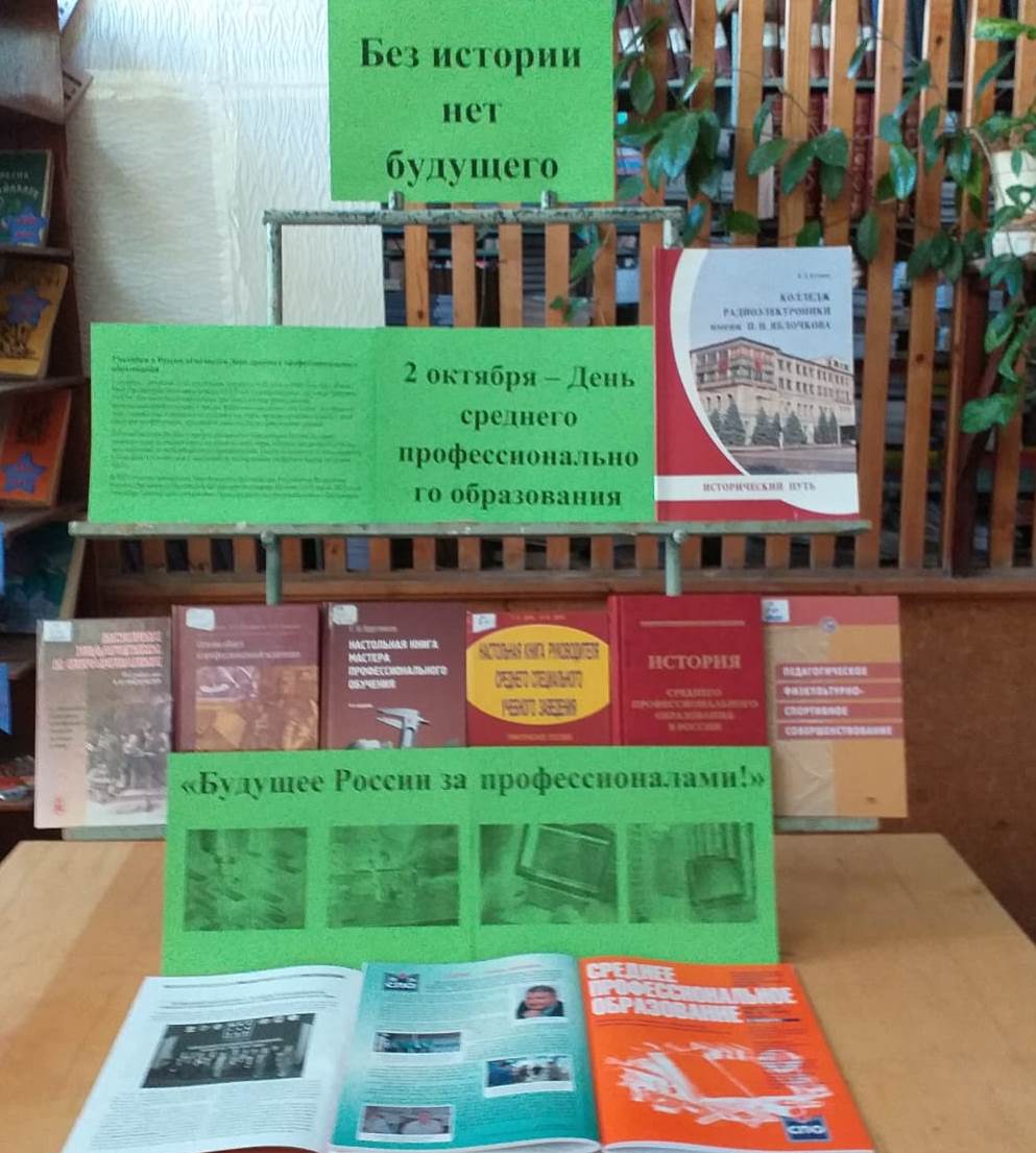 К мероприятию в библиотеке КРЭ открыта книжно - иллюстративная выставка, на которой представлены книги об истории среднего профессионального образования в России и истории Колледжа радиоэлектроники имени П.Н. Яблочкова.