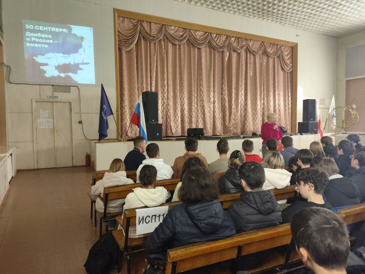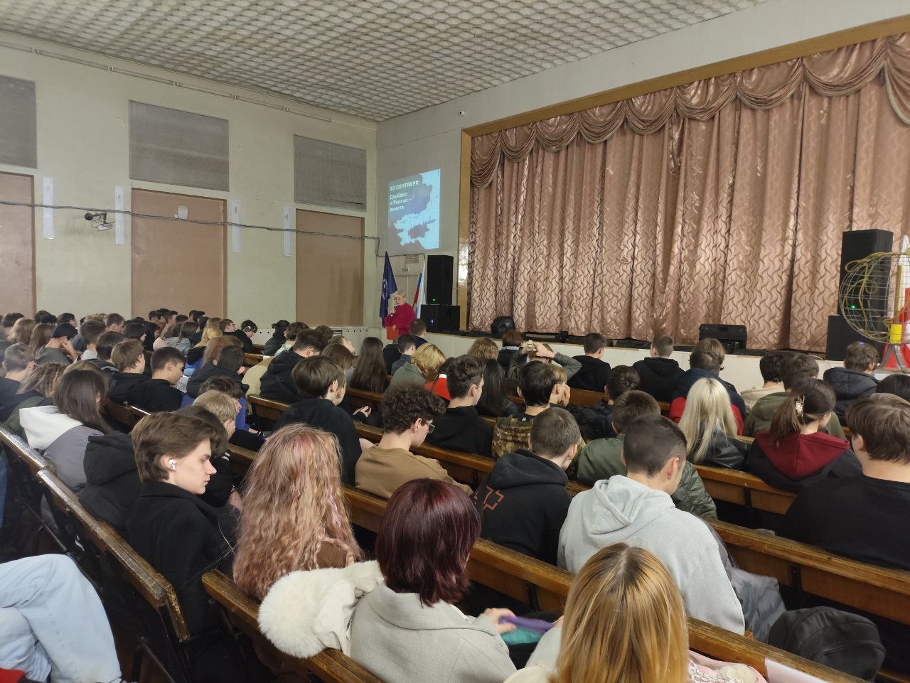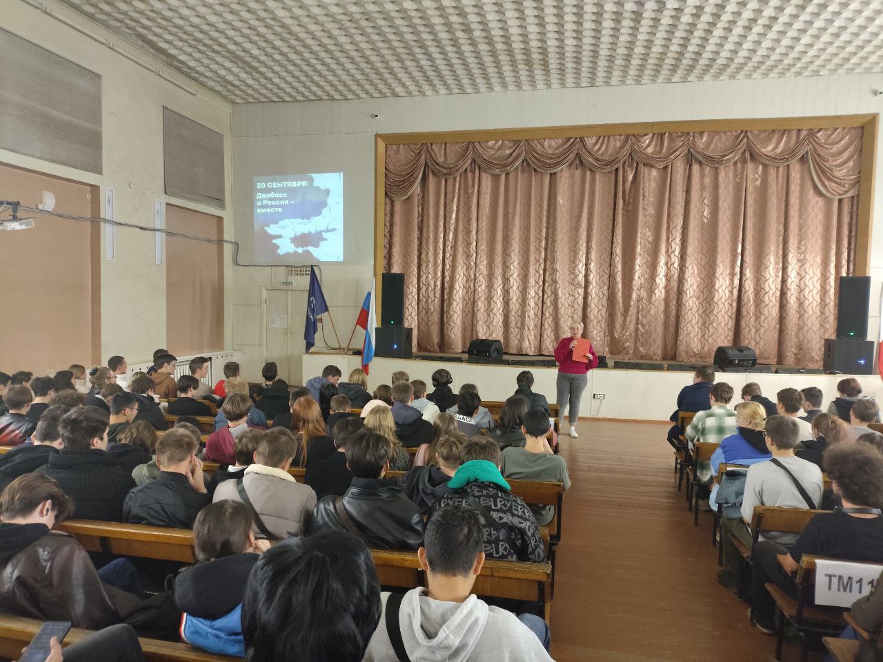 В Большом актовом зале колледжа имени П.Н. Яблочкова прошло важное мероприятие, посвященное Дню вхождения освобожденных территорий в состав России.