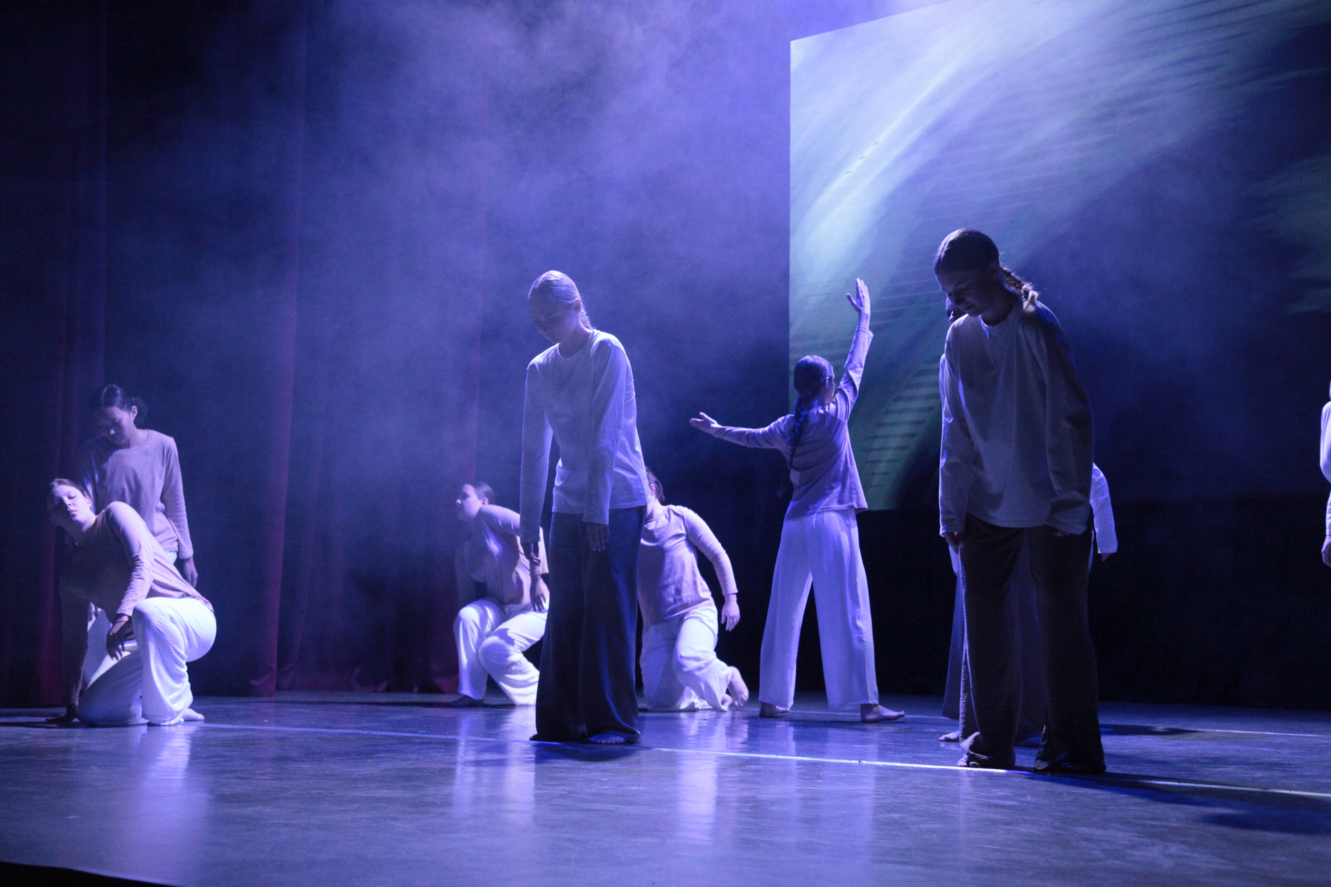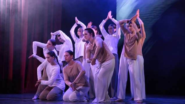 Танцевальный коллектив «Пассажиры» представил творческий номер: тревожная музыка, перерастающая в грохочущие аккорды, передала страх людей в военное время и их непоколебимое стремление защитить Родину.