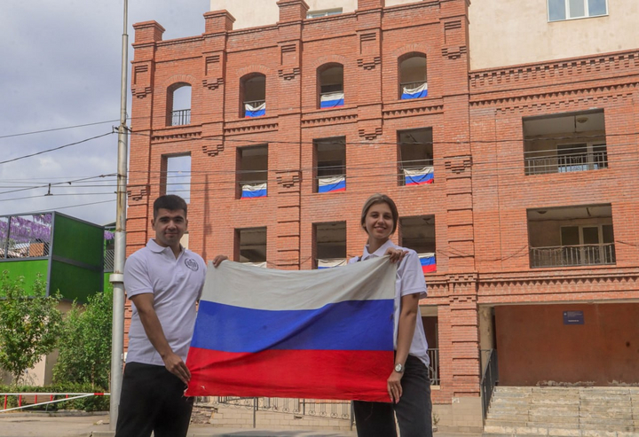 21 августа в преддверии Дня Государственного флага активисты патриотического клуба "Я Горжусь СГУ" приняли участие в украшении фасада и балконов общежития №1 триколором.