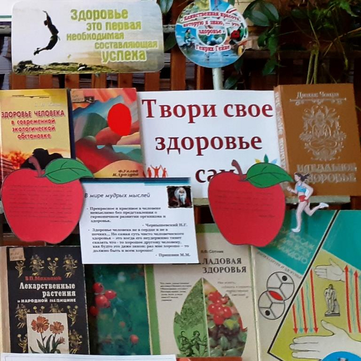 Здоровый образ жизни – отличная защита от болезней. Выставка также предложила вниманию посетителей библиотеки книги, в которых они узнали об особенностях своего организма, о роли средств физической культуры в усилении возможностей организма, о том, как нужно заботиться о своём здоровье, чтобы не болеть, расти крепкими и здоровыми, как сберечь зрение и слух, и многое другое. Выставка также содержала журнальные публикации о закаливании, о лечении травами, яблоками, о способах повысить иммунитет, о правильном питании и употреблении в пищу зелени, о диете против старения и усталости и многом другом.