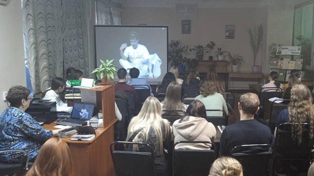 Знакомство с творчеством Е. Гришковца проходило в читальном зале гуманитарных наук ОУООПН ЗНБ СГУ (ул. Заулошнова, д. 3).