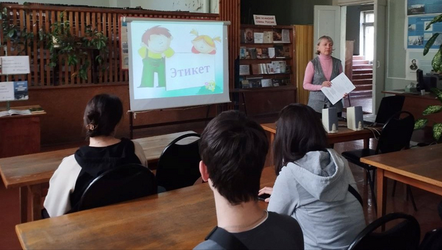 23 октября 2025 года в библиотеке Колледжа радиоэлектроники имени П.Н. Яблочкова для групп 9271 и 9361 (классный руководитель Елена Сергеевна Сотова) прошел информационно - познавательный час «Что такое этикет? Или уроки вежливости», который подготовила и провела библиотекарь Светлана Александровна Вьюгова.