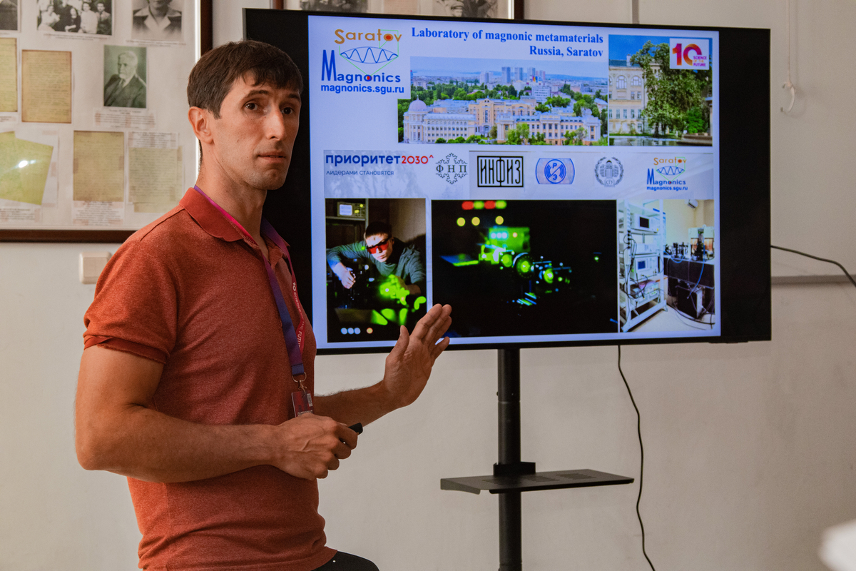 Заместитель директора НИИМФ СГУ А.В. Садовников напомнил, что магниты издавна использовались для хранения данных – на дискетах и жёстких дисках. Но теперь исследователи научились заставлять наномагниты не только хранить, но и обрабатывать и передавать сигналы. Это открывает путь к созданию принципиально новых устройств.