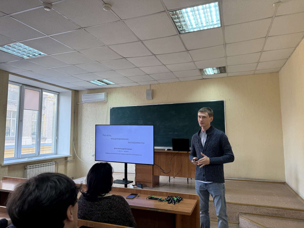 О направлении "Механика и математическое моделировании" рассказал доцент кафедры математической теории упругости и биомеханики Александр Викторович Доль. Абитуриенты узнали, чем занимаются студенты, обучающиеся на этом направлении, какие решаются задачи и где они смогут работать после окончания мехмата.