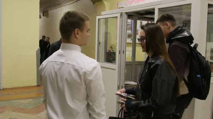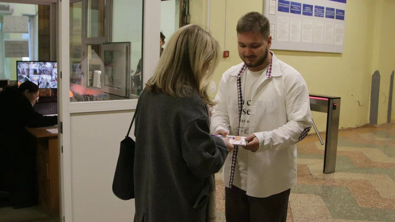 03.10.2025 активисты студсовета в парадной форме встречали преподавателей с подарками, улыбками, пожеланиями и приглашали прийти в фойе второго этажа на большой перемене для участие, где студклубовцы вручат свой творческий подарок