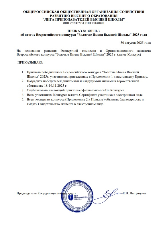 Ознакомиться со списком победителей можно по ссылке: https://goldennames.professorstoday.org/zivsh2025