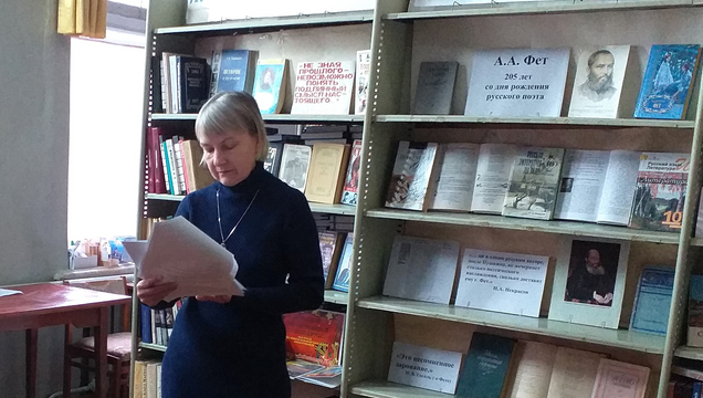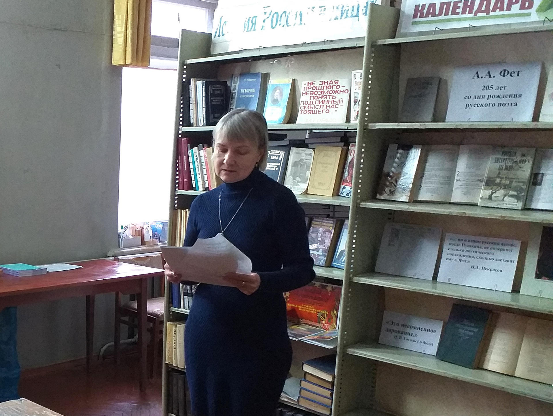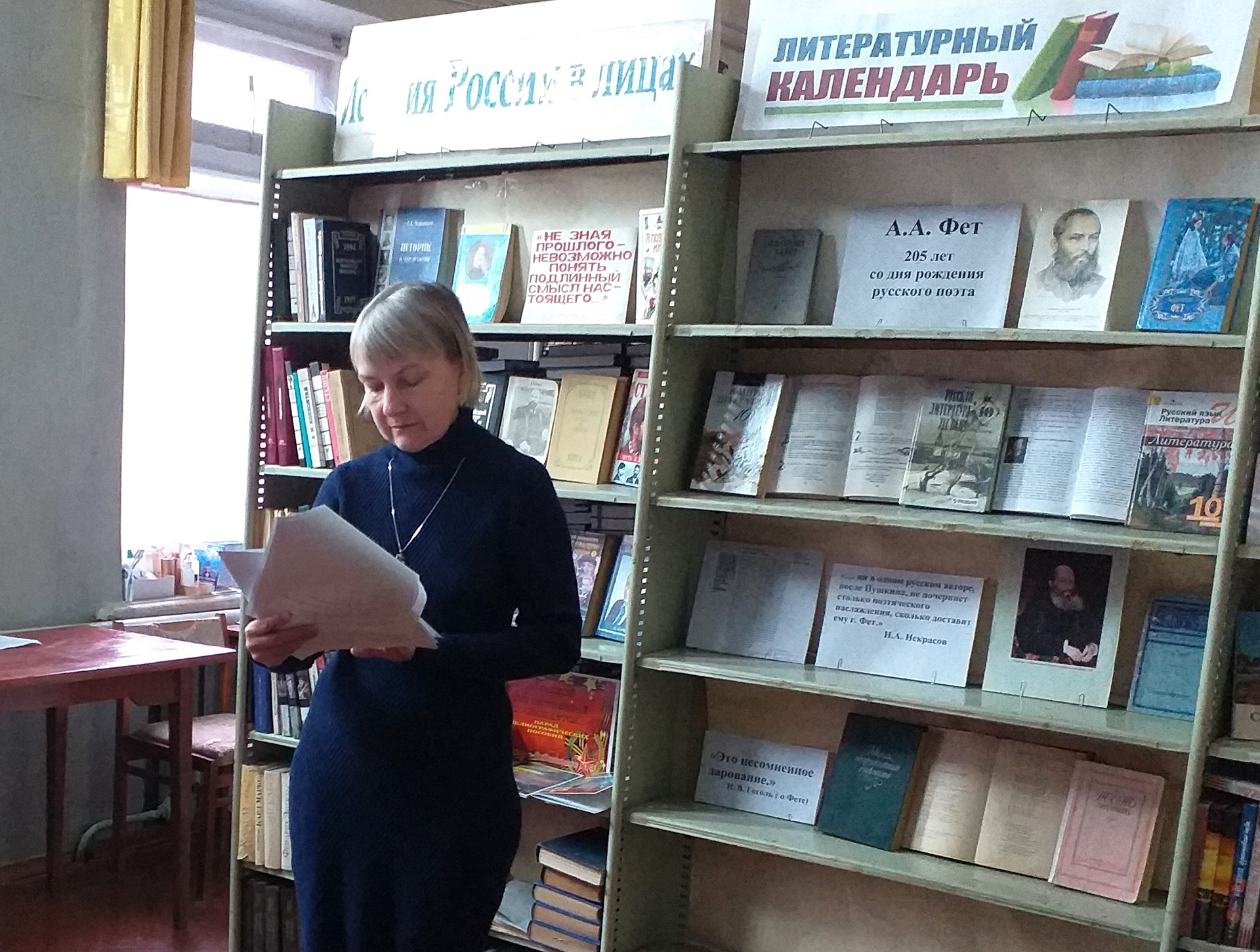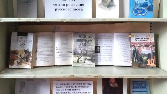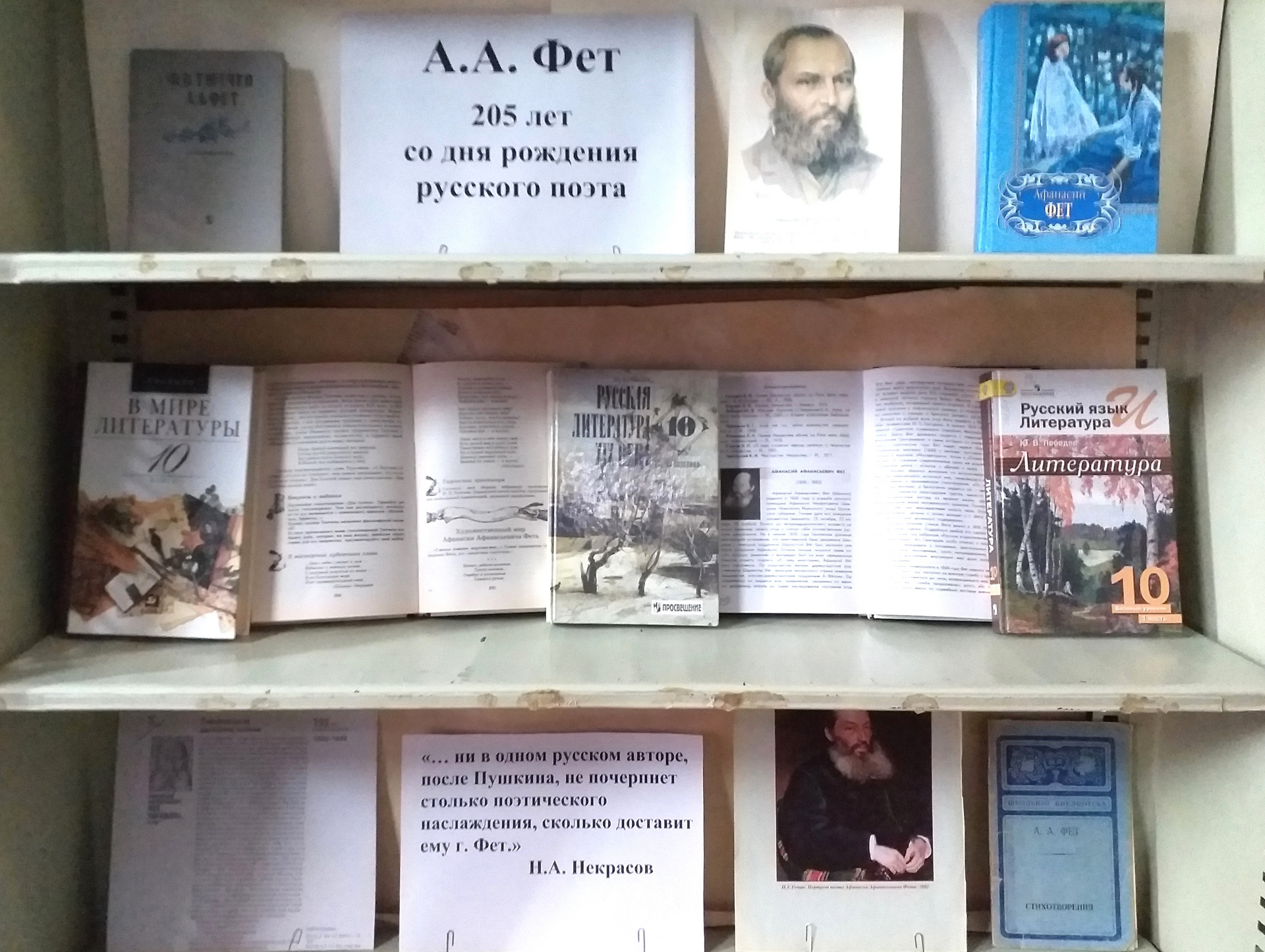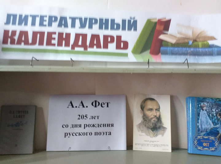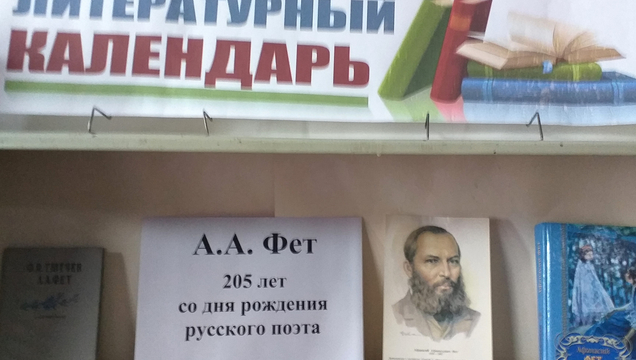 К мероприятию в библиотеке открылась книжно — иллюстративная выставка, на которой представлены произведения А.А. Фета и книги о жизни и творчестве поэта.