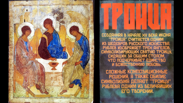 На выставке представлены репродукции работ Андрея Рублёва и его школы.