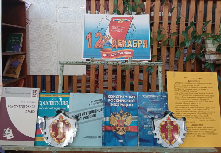 10 декабря 2025 года в библиотеке Колледжа радиоэлектроники открылась книжно-информационная выставка, посвященная памятной дате - Дню Конституции Российской Федерации, принятой всенародным голосованием 12  декабря 1993 года.