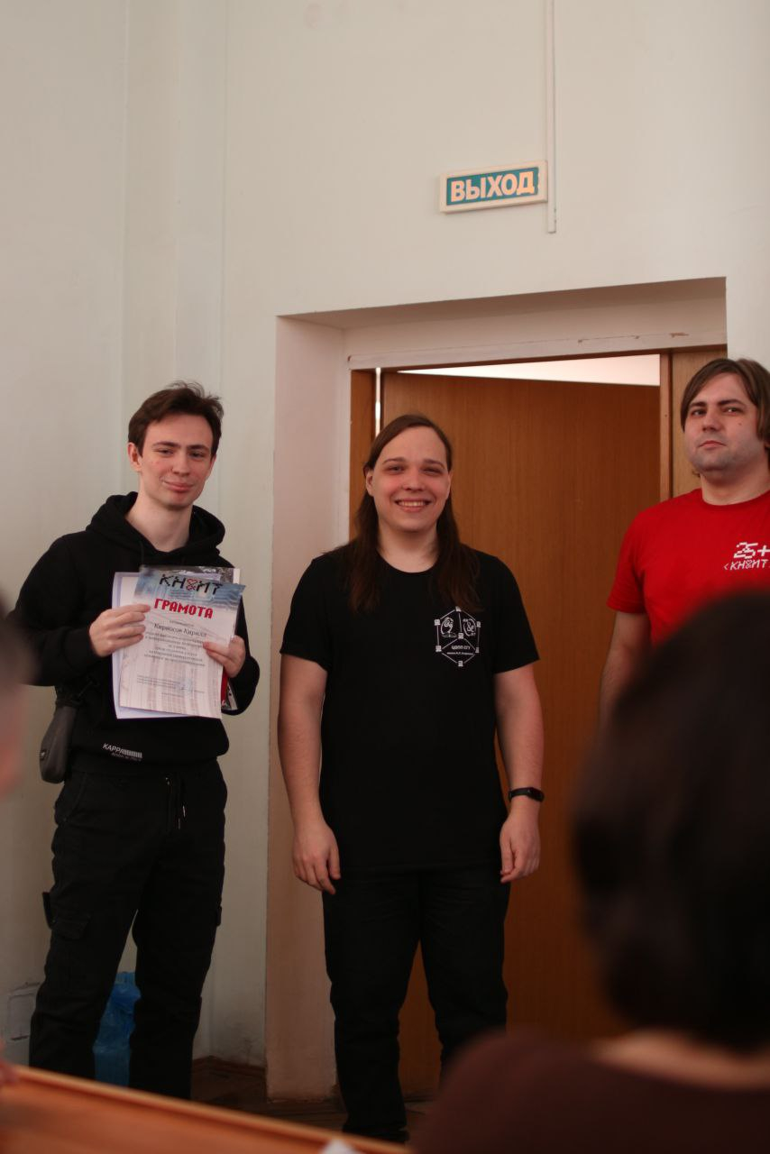 Только одна команда решила все 13 задач, завоевала 1 место и дипломы 1 степени - это команда Нижегородского филиала высшей школы экономики, 12 задач решила также одна команда, завоевала 2 место и диплом 1 степени – это команда факультета компьютерных наук и информационных технологий в составе: Ивна Родина, Киралла Кирносова и Данила Сарафанникова. Дипломы 1 степени получат и команды, решившие 11 задач, среди них команда СГУ в составе: Султана Уталиева, Вадима Янченко и Кирилла Еременко. Команды, решившие 10 и 9 задач, получат дипломы 2 степени, а решившие 8 и 7 задач – дипломы 3 степени. 9 команд нашего университета завоевали дипломы различной степени, среди них и команды, составленные из студентов нового набора Центра олимпиадной подготовки программистов, занятия с которыми проводят Иван Андросов, Михаил Пикляев. Председателем жюри квалификационных соревнований является Александр Фролов.
