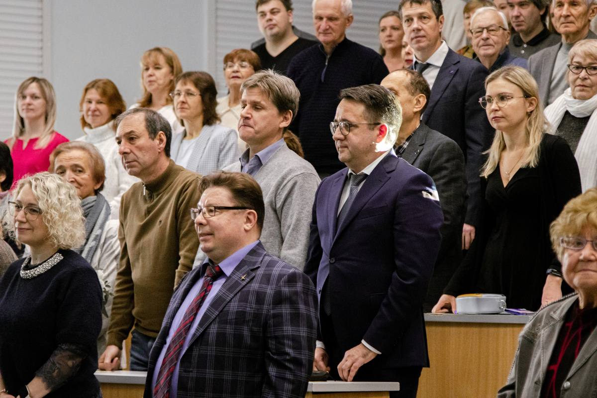 У студентов 1950-х был свой корпоративный гимн, который они бережно передали другим поколениям. Сегодняшние студенты-мехматовцы восстановили его и спели вместе с гостями торжества.