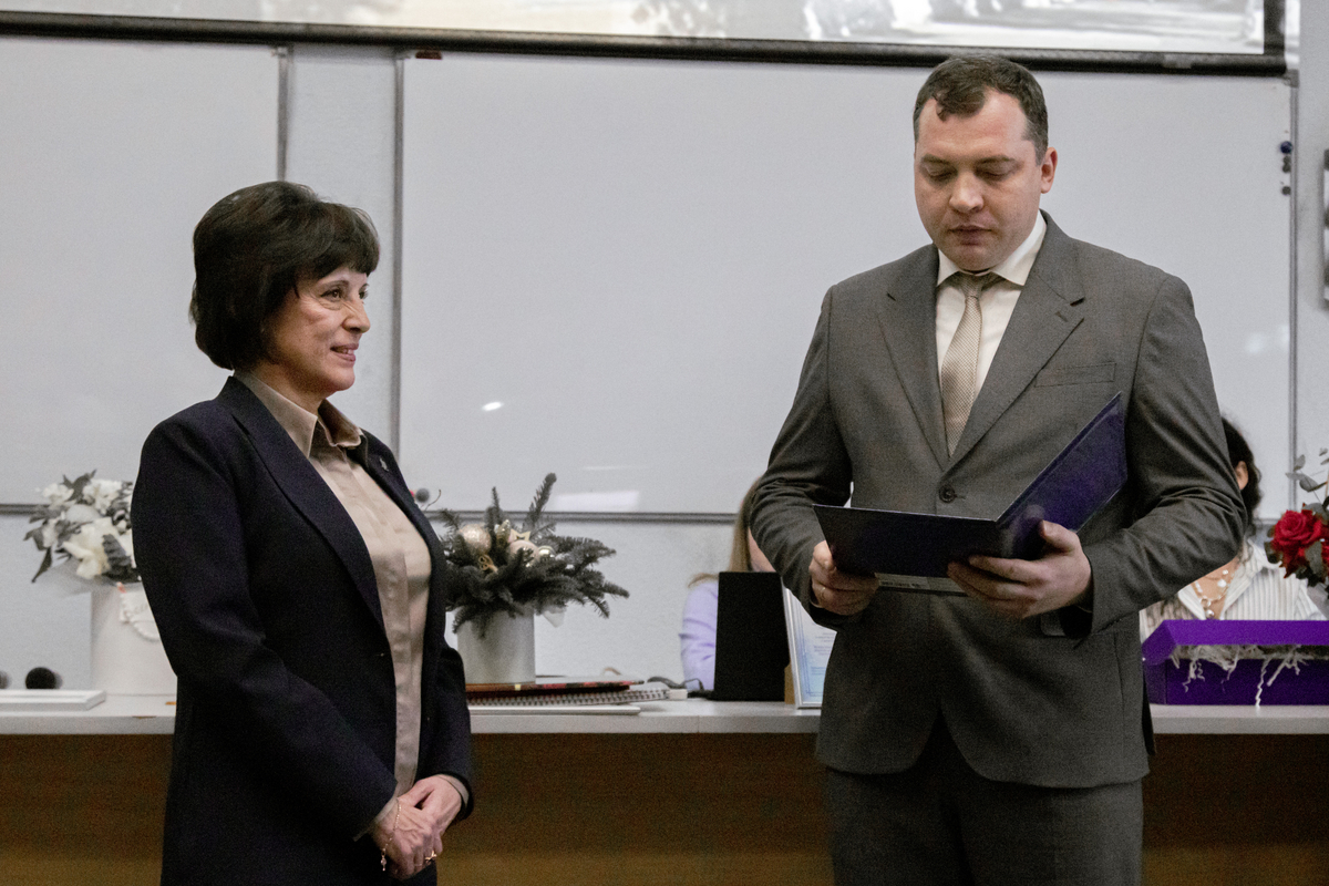 В связи со знаменательной датой в жизни факультета проректор по учебной работе СГУ (и выпускник мехмата) И.Г. Малинский наградил сотрудников родного факультета грамотами ректора за высокий профессионализм и значительный вклад в развитие университета.