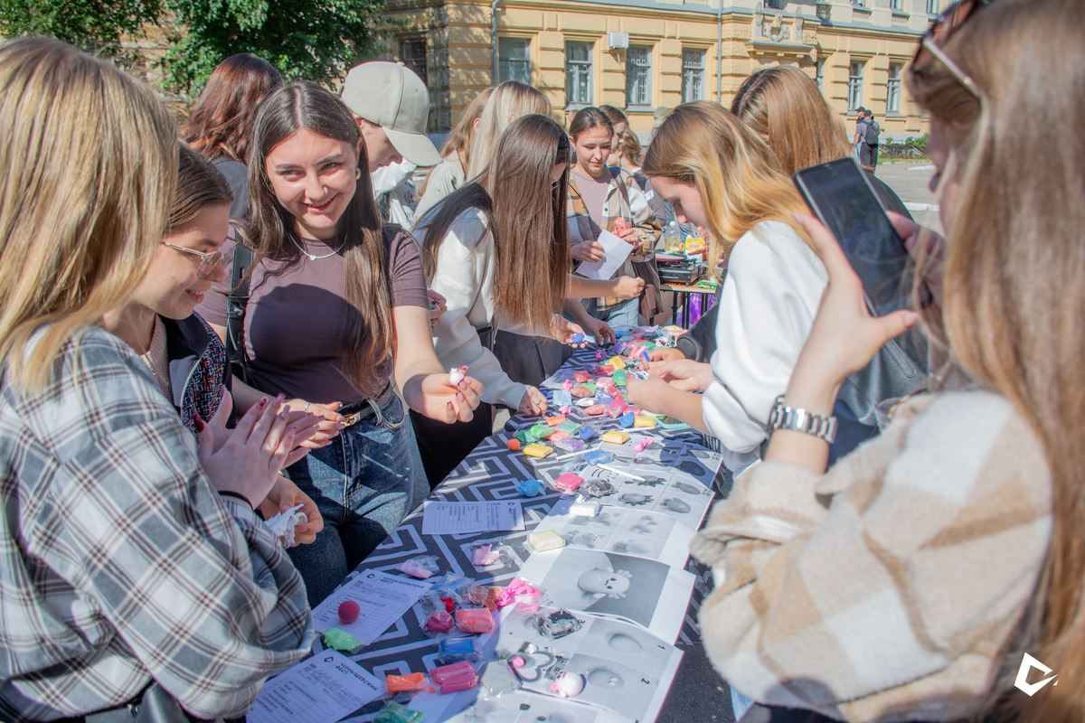 На интерактивных «станциях» студенты могли не только выполнять задания, но и перекусить и расслабиться. Например, на площадке Совета студентов и аспирантов в зоне отдыха можно было отведать блинов с чаем, а также слепить фигурку из пластилина.