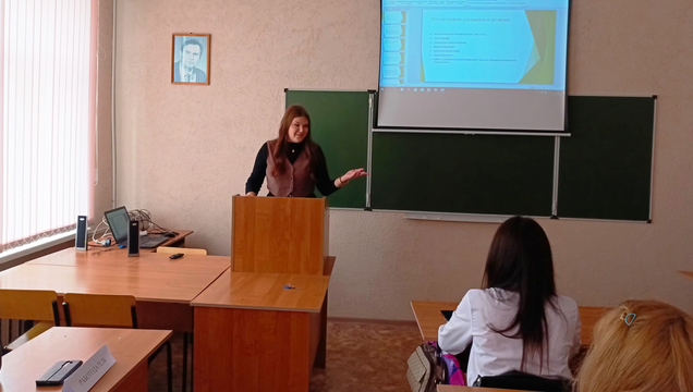 После этого организатор мероприятия и его ведущая, доцент кафедры филологических дисциплин Л.А. Мельникова рассказала студентам об основных способах поиска работы, напомнила базовые правила написания резюме и предложила обучающимся при помощи специальной памятки самостоятельно подготовить данный вид документа, отразив в нем информацию об имеющихся у них на данный момент компетенциях, необходимых для выполнения ими обязанностей педагога-словесника.