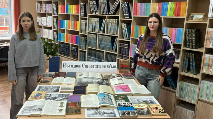 В библиотеке была представлена выставка книг «Нам подвиг Сталинграда не забыть»: архивные документы, фотографии, тематические издания, периодика военных лет.
