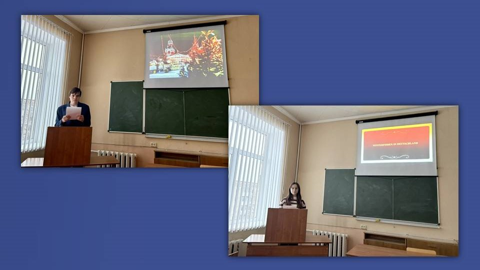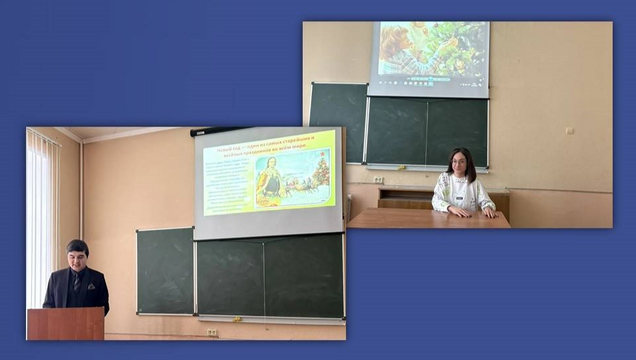 Студент 223 группы Карим Килебаев подготовил интерактивную презентацию о традициях встречи Нового года в европейских и некоторых восточных странах. Из рассказа Карима участники узнали, что, например, в Узбекистане отмечают этот праздник дважды в году – по европейскому стилю 1 января и по древнеиранским традициям 21 марта в день весеннего равноденствия. После завершения презентации участники ответили на вопросы викторины, которую провела Виктория Масленникова.