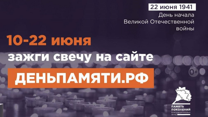 10 июня по всей России начинается онлайн-акция «Свеча памяти». До 22 июня на сайте каждый желающий сможет зажечь виртуальную свечу и отдать дань уважения героям Великой Отечественной войны.