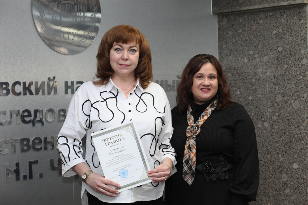 Учёный совет СГУ продолжился награждением почётными грамотами Министерства науки и высшего образования России за значительные заслуги в сфере образования и добросовестный труд. На сцену были приглашены: