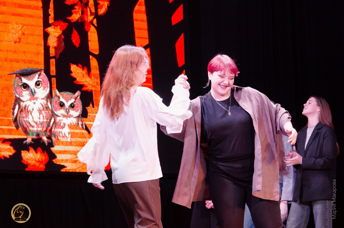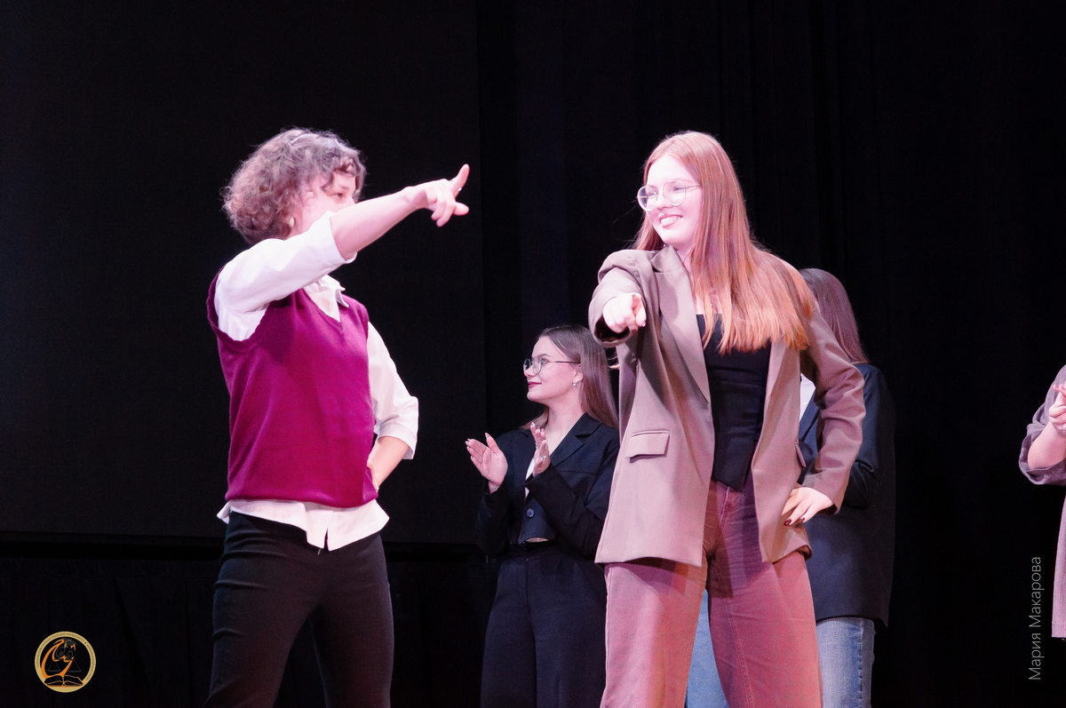 С большим удовольствием первокурсники приняли участие в традиционном танцевальном батле: им было предложено повторить движения случайно выбранного популярного танца, что подняло настроение не только самим конкурсантам, но и зрителям в зале.