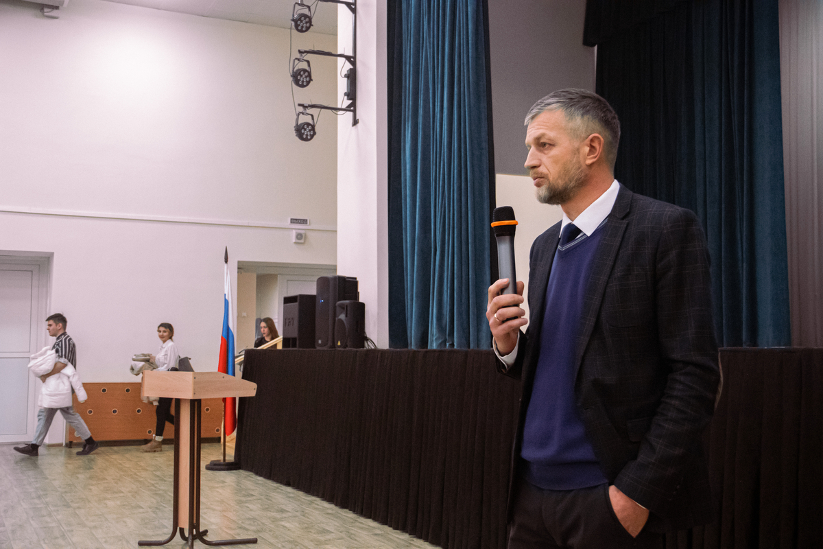 Во второй части встречи руководитель школьного спортивного клуба «Олимпийский резерв» Гимназии № 7 В.С. Трошин рассказал о своём педагогическом опыте в преподавании физической культуры и представил достижения своих подопечных.