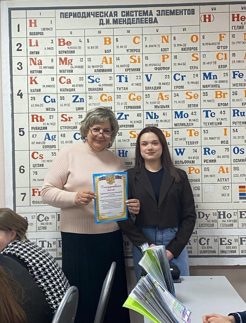 Институт химии благодарит учителей школ за организацию и активное участие во встрече: Подушкину Татьяну Николаевну (учитель химии, СОШ №8, г. Каменка), Васильчикову Оксану Анатольевну (учитель химии, Лицей №4, г. Саратов), Оганесян Елену Нориковну (классный руководитель, Лицей №4, г. Саратов).