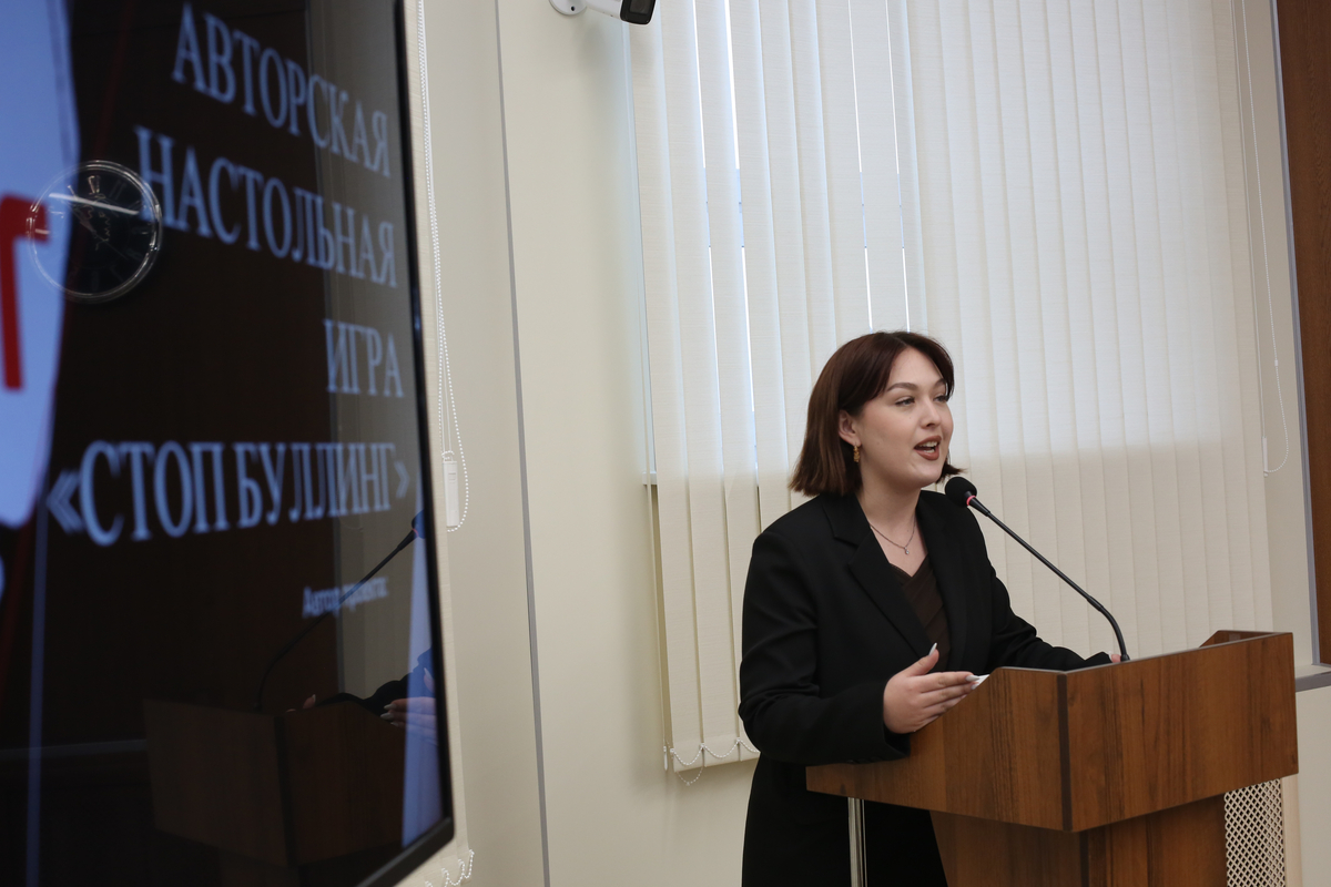 Среди представленных инициатив внимание привлекла авторская настольная игра «Стоп буллинг», разработанная студенткой юридического факультета Еленой Коноплевой. Проект направлен на популяризацию толерантного отношения в школьном коллективе. Игра позволяет моделировать ситуации, помогающие формировать уважительное общение среди подростков. Идея уже получила поддержку областных молодёжных и образовательных структур.