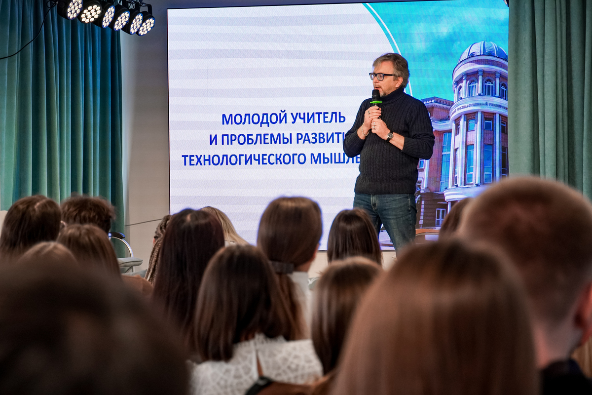 С лекцией «Это дело техники!» выступил профессор кафедры теоретической и социальной философии М.А. Богатов. Учёный говорил о том, как научный подход изменил человеческую жизнь – мир теперь живёт «по часам», по расписанию, а на смену ремесленному производству пришла эпоха технической революции. При этом, как отметил профессор, общество разделилось: одни смотрят на прогресс с опаской, другие – с осознанной готовностью принять его вызовы. Диалог человека и машины несет в себе немало рисков, влияя на все сферы деятельности человека, в том числе на современное школьное образование.