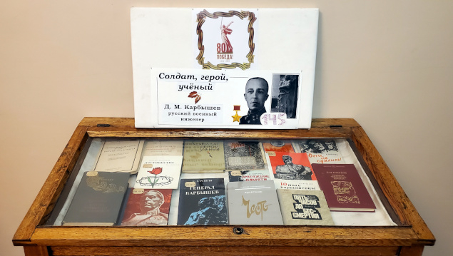 К 80-летию Великой Победы открыта книжная выставка «Солдат, герой, учёный: Д. М. Карбышев – русский военный инженер. 145-лет со дня рождения».