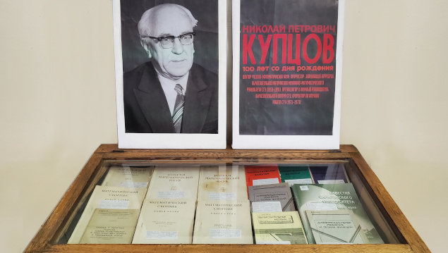 Выставка посвящена 100-летию выдающегося российского математика, доктор физико-математических наук, профессора, заведующего кафедрой вычислительной математики механико-математического факультета СГУ (1959−1991), организатора и научного руководителя Вычислительного центра СГУ, проректора по научной работе (1971−1973) Николая Петровича Купцова.