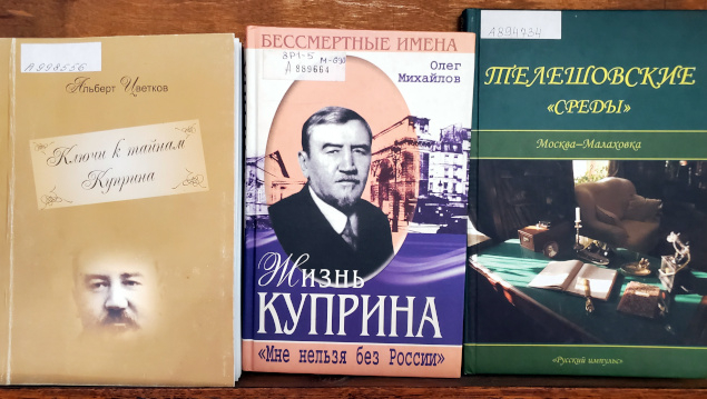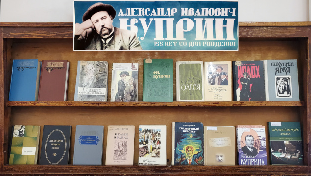 На выставке представлены произведения А. И. Куприна, литература, посвящённая жизни и творчеству писателя. Интерес представляет книга О. Михайлова «Жизнь Куприна» из серии «Бессмертные имена» (2001). Книга представляет собой беллетризованную биографию знаменитого русского литератора, в которой он предстаёт не скучным «классиком» из школьной программы, а живым, страстным человеком, который в своих произведениях талантливо отобразил собственный богатейший жизненный опыт.