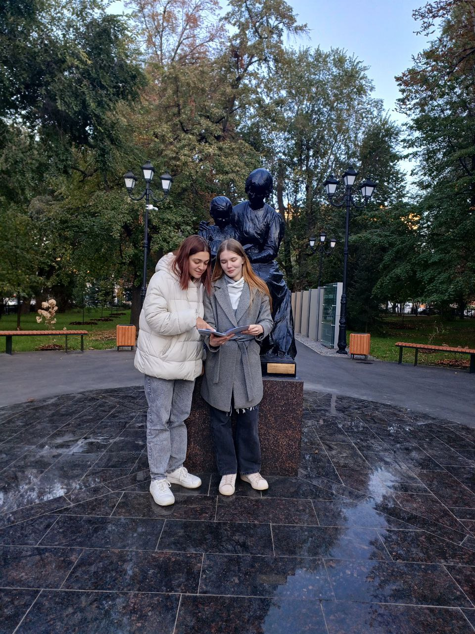 В преддверии профессиональных праздников «Международного дня социального педагога» и «Дня учителя» студенты 2 курса профиля «Психология и социальная педагогика» (в рамках занятий по «Основам социальной педагогики») под руководством преподавателя дисциплины, доцента кафедры педагогической психологии и психодиагностики Татьяны Николаевны Черняевой приняли участие в педагогическом квесте. Проходя его этапы в реалиях города, решая поставленные задачи, они не только познакомились с интересными памятниками, имеющими отношение к образованию, узнали их историю создания, но и построили свою карту педагогических локаций, добавив в нее адреса вновь открытых скульптур памяти школьному детству.
