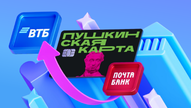 Информируем Вас о том, что с 2026 года "Пушкинская карта" будет обслуживаться Банком ВТБ (ПАО). В связи с этим до 28 декабря 2025 года необходимо подать заявление о перевыпуске карты. С подробной информацией о Программе можно ознакомиться по ссылке: https://www.pochtabank.ru/service/debetcards/pushkinskaya_karta/news.