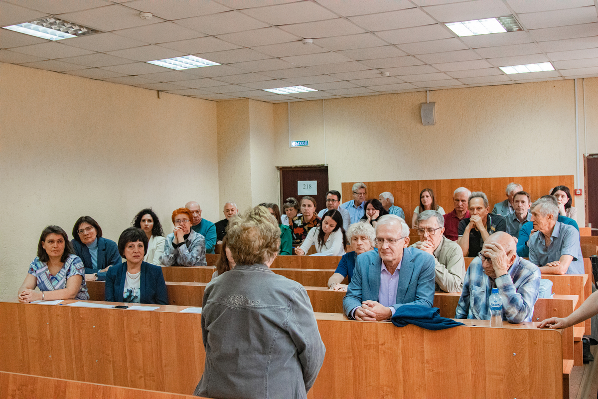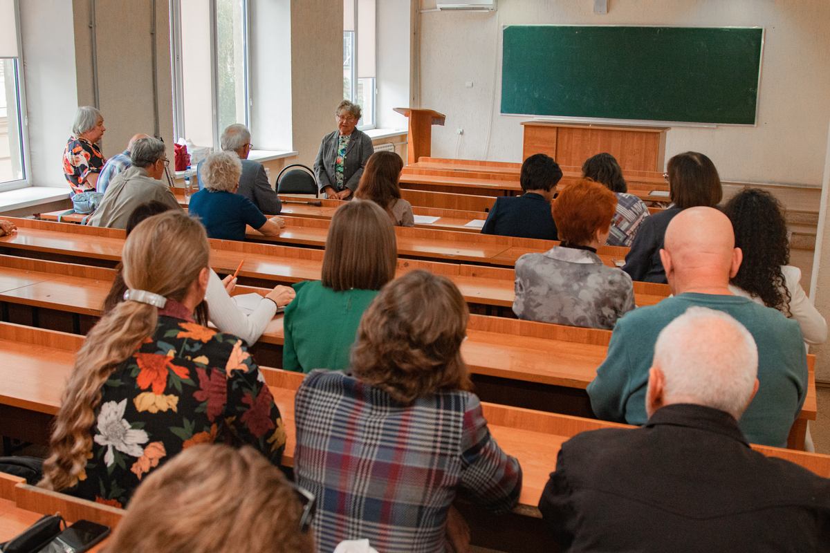 На расширенном заседании Учёного совета механико-математического факультета 18 сентября собрались коллеги, ученики, друзья и представители научного сообщества, чтобы поздравить юбиляра. Галина Владимировна посвятила университету более 70 лет, пройдя путь от студентки до профессора. Здесь ещё в студенческие годы она нашла своего будущего спутника жизни и единомышленника – Августа Петровича Хромова, человека, бесконечно преданного математике.