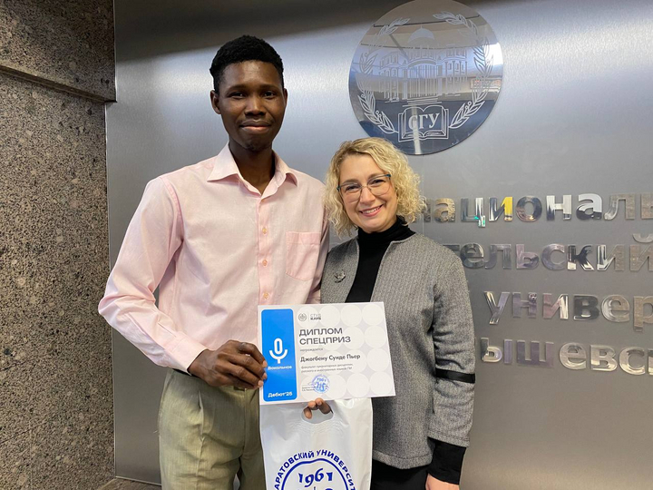 Джогбену Сунде Пьер во вторник, 21 октября, в рамках гала-концерта смотра-конкурса «Дебют» представил на сцене 10 корпуса СГУ свое прочтение песни Est-ce que tu m'aimes исполнителя Maître Gims. Выступление студента было высоко оценено профессиональным жюри.