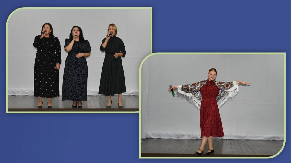 В исполнении талантливых артистов Культурно-досугового центра прозвучали знаковые песни военных лет: «День Победы» и «Песенка фронтового шофёра» (Н. Зернов), «Случайный вальс» (Ю. Горобцова), «Тёмная ночь» и «Смуглянка» (А. Юдаев), «Катюша» (Е. Мельникова), «Огонёк» и «Песенка шофёра» (трио «Душа»), «Землянка» и «Валенки» (Н. Грешнова), «Тальяночка» (Г. Андрианова), «Лизавета» (Д. Савченков), «На безымянной высоте» и «Три танкиста» (А. Шевцова), «Десятый наш десантный батальон» (Н. Весна). Завершил программу лирический «Майский вальс» (Н. Зернов). Каждый артист вкладывал душу в свое выступление, стремясь передать слушателям всю глубину чувств и эмоций той далекой поры.