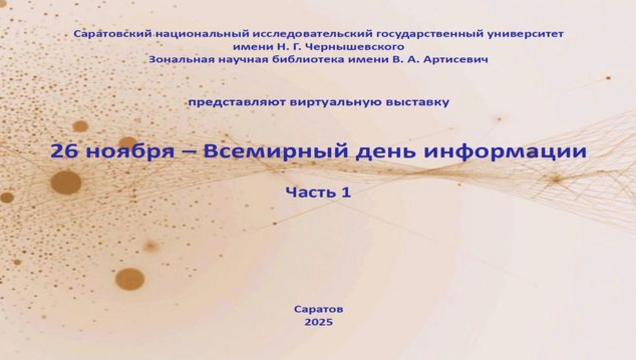 В начале выставки приводится экскурс в историю возникновения праздника. Представлены работы некоторых российских учёных, внесших неоценимый вклад в развитие теории информации; представлены имеющиеся в фонде ЗНБ СГУ издания из серии «Гении компьютерного века».