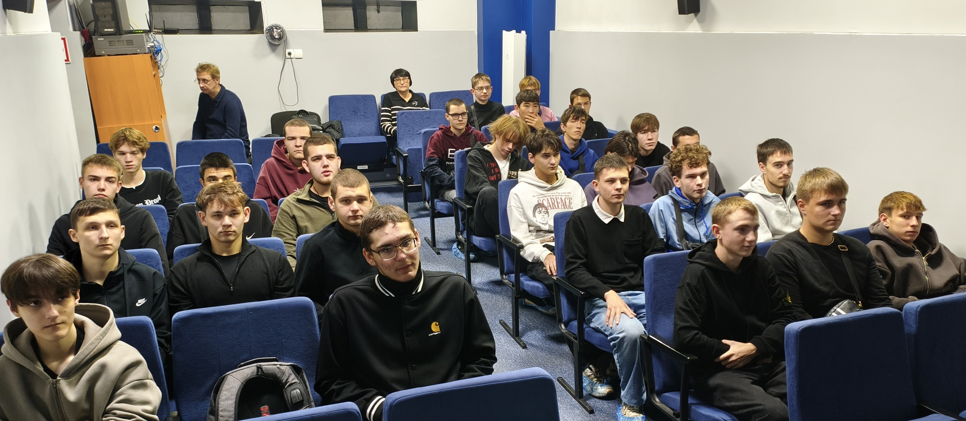 В преддверии памятной даты - День Героев Отечества, которая отмечается в России ежегодно 9 декабря, студенты третьего курса геологического колледжа СГУ специальность 15.02.12 Монтаж, техническое обслуживание и ремонт промышленного оборудования (по отраслям) вместе с классными руководителями О.А. Шаровой и Е.В. Даниловской посетили кинозал «На Рижской» Саратовского областного методического киновидеоцентра.
