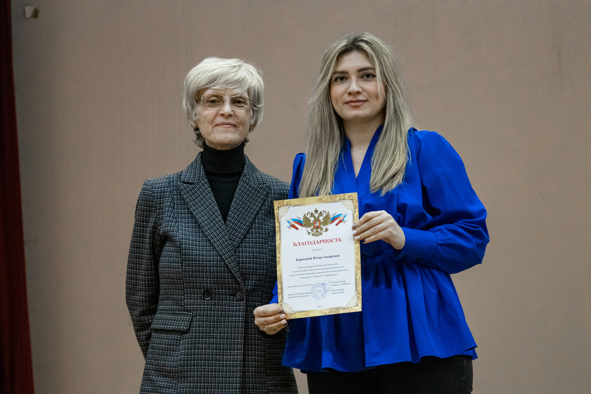 Декан факультета психологии СГУ Л.Н. Аксеновская отметила работу сотрудников лаборатории благодарственными письмами деканата.