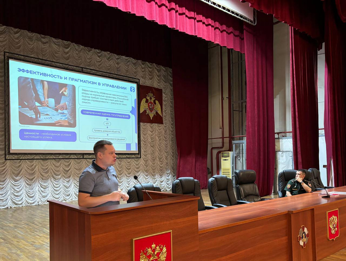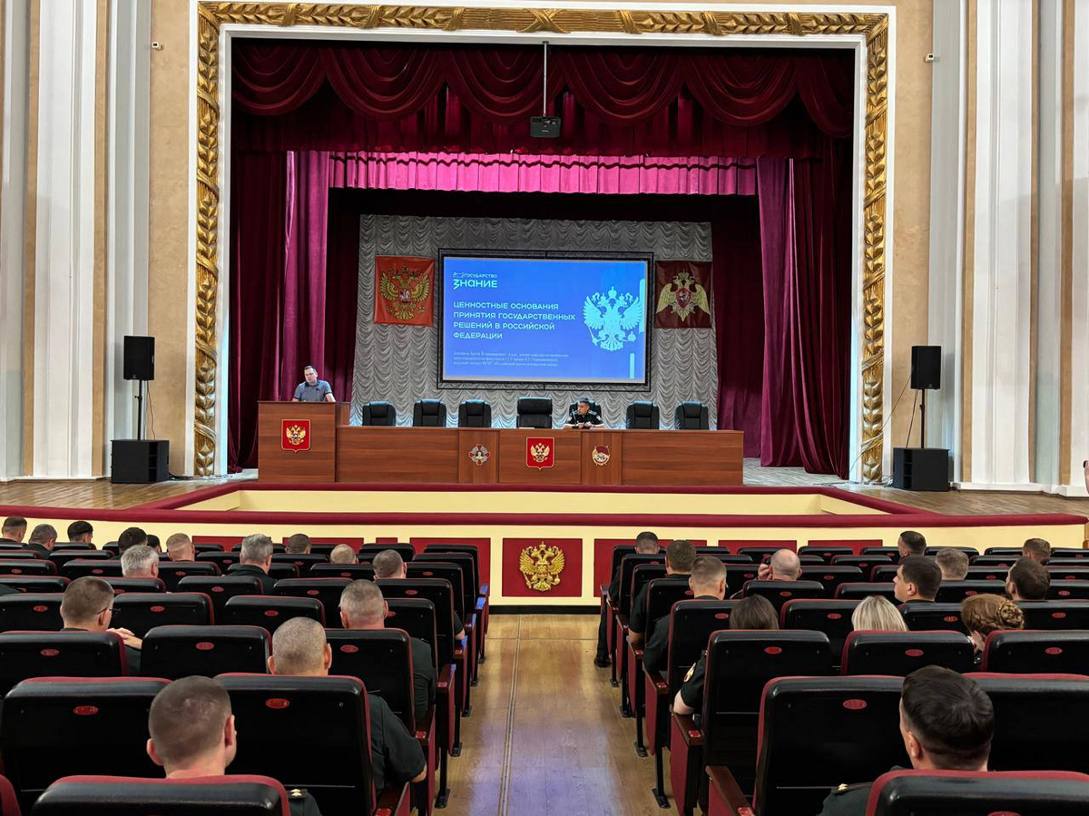 Доцент кафедры политических наук юридического факультета, к.п.н. Богданов А.В. при поддержке Российского общества «Знание» на минувшей неделе провел в Саратовском военном институте войск национальной гвардии Российской Федерации в рамках учебно-методического сбора с руководящим и научно-педагогическим составом лекцию на тему: «Ценностные основания принятия государственных решений в Российской Федерации».