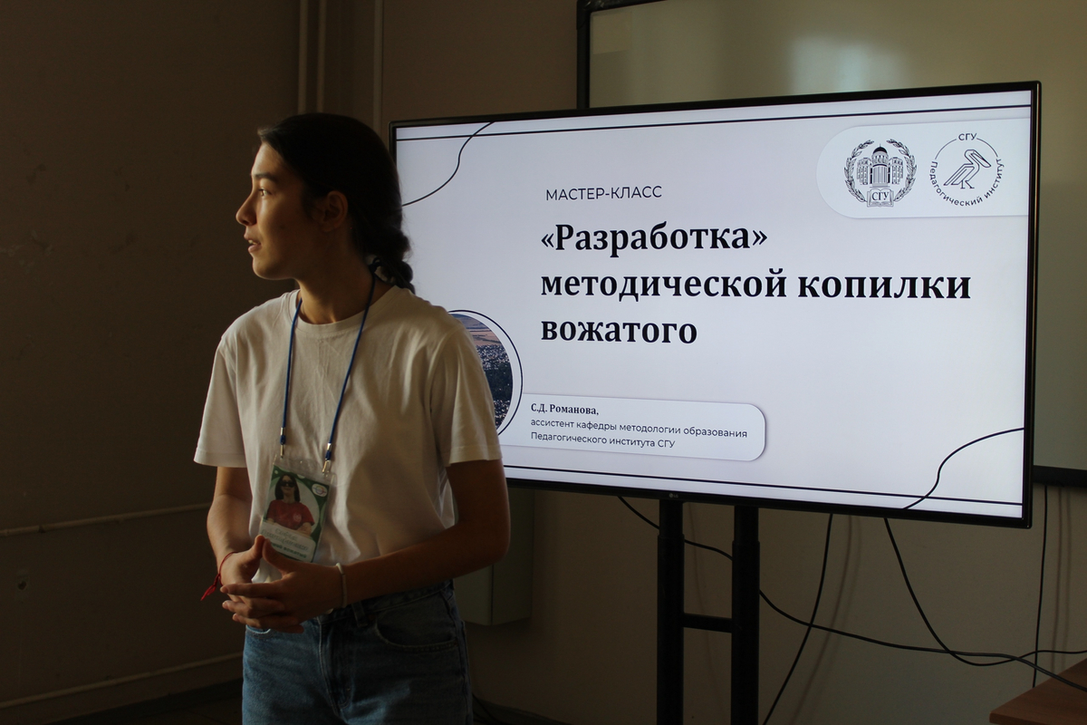 На мастер-классе «Разработка методической копилки вожатого» ассистента кафедры методологии образования Педагогического института СГУ Софьи Дмитриевны Романовой конкурсанты проверили умение выбирать наиболее подходящие способы решения ситуаций с точки зрения различных позиций вожатого. У участников мастер-класса была отличная возможность обменяться опытом в командах со своими коллегами. В качестве наставников для команд выступили уже опытные вожатые: Ксения Волкова, студент факультета психолого-педагогического и специального образования Педагогического института СГУ София Лазарева, студент факультета гуманитарных дисциплин, русского и иностранных языков Педагогического института СГУ, советник директора по воспитанию ГБПОУ СО «Дергачевский агропромышленный лицей» Ольга Кукушкина, студент ГАПОУ СО «Саратовский областной педагогический колледж» Екатерина Романова.