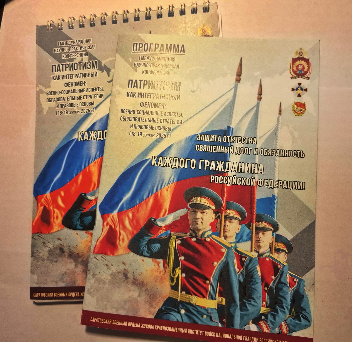 Преподаватели юридического факультета:доцент Е.О. Абаева, доцент С.В. Стрыгина, доцент С.В. Шошин, ст. преподаватель Ю.А. Чулисова, а также студентка 232 группы направления подготовки «юриспруденция» А. В. Яраловаприняли участие в I Международной научно - практической конференции: «Патриотизм как интегративный феномен: военно- социальные аспекты, образовательные стратегии и правовые основы». Организатором конференции был Саратовский военный ордена Жукова Краснознамённый институт войск национальной гвардии. Конференция проходила два дня 18 и 19сентября 2025 года.