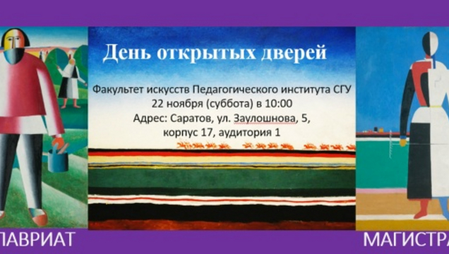 22 ноября в 10.00 состоится День открытых дверей на факультете искусств Педагогического института СГУ имени Н.Г. Чернышевского.